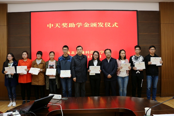 11月4日上午,中天奖学金颁奖仪式在交流中心举行。我校20名甘肃籍家庭经济困难、品学兼优的学生每人获得5000元资助。我校校友、中天企业集团董事长陈耀祥,副校长马建华,学生处、教育发展基金会及相关院系负责人,100余名学生代表参加颁奖仪式。