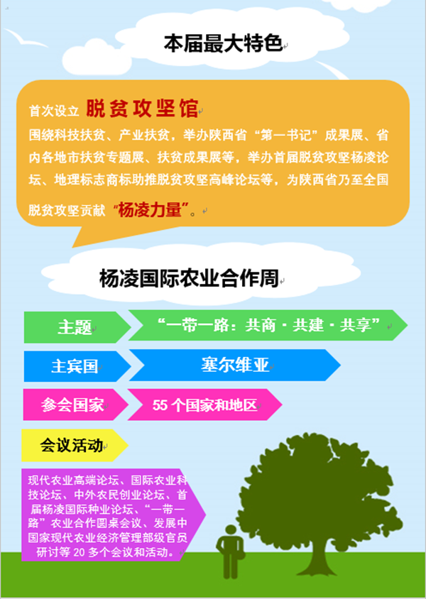 本届杨凌农高会以“ 一带一路 助推农业现代化”为主题,围绕国际农业合作交流、农业供给侧结构性改革、科技扶贫与产业扶贫等领域,设置了现代农业发展研讨、特色现代农业展览展示、涉农品牌标准成果信息系列发布、项目招商与技术交易等活动。还首次设立脱贫攻坚展馆,围绕科技扶贫、产业扶贫两大板块,展示各地以农业科技助力脱贫攻坚的巨大成就。我校围绕服务“一带一路”共布设农业科技展品300余件,其中有植物新品种110项,涉及小麦、玉米、油菜、马铃薯、小杂粮主栽作物,以及水果、瓜菜、经济林作物等。