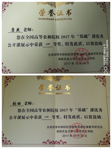 10月28日至29日,全国高等农林院校思政课教师学习党的十九大精神暨新时代思政课课程研讨会在湖南农业大学召开,马克思主义学院副教授康燕的微课《法的本质》、张丽副教授的《继承法》获得了本次研讨会优秀微课展示一等奖。