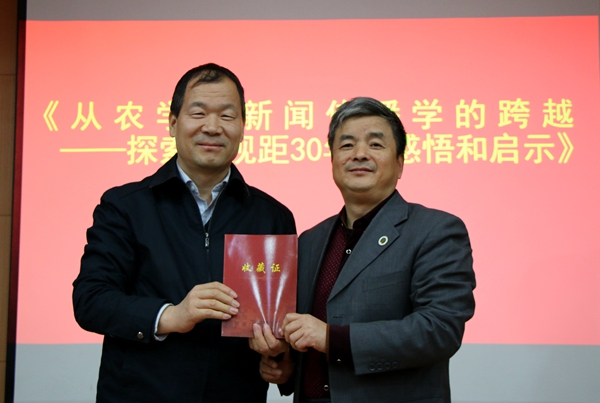 11月7日下午,在第18个记者节到来前夕,前来采访杨凌农高会的人民日报高级记者、我校兼职教授、优秀校友蒋建科重回母校,为我校师生带来了一场题为《从农学到新闻传播学的跨越——探索超视距新闻30年的感悟和启示》的精彩报告。