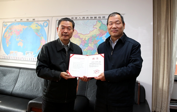 校党委书记李兴旺向蒋建科颁发兼职教授聘书 靳军/图