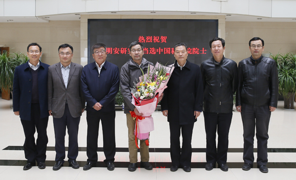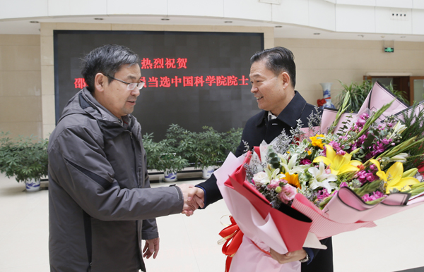 正在我校视察工作的陕西省人大常委会副主任李金柱以及陪同视察的杨凌示范区管委会副主任刘天雄也对邵明安院士表示祝贺。
