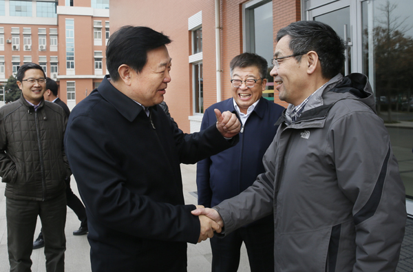 党委书记李兴旺、常务副校长吴普特、党委副书记徐养福、吕卫东等在学校迎接邵明安院士并向他表示热烈祝贺。