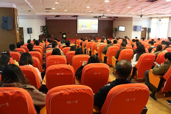 江西省教育厅、武汉市人民政府、南开大学、黑龙江大学、兰州资源环境职业技术学院作会议交流发言。宝鸡、杨凌地区部分高校分管就业工作的领导、就业工作负责人,我校毕业生就业工作领导小组成员单位负责人,院系毕业生就业工作领导小组负责人、分管就业工作的领导,负责就业工作的研究生秘书、学工秘书、辅导员和2018届毕业班班主任近130余人在学校分会场参加会议。