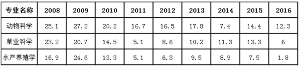 表1 动科学院2008年-2016年新生报考志愿率情况(%)