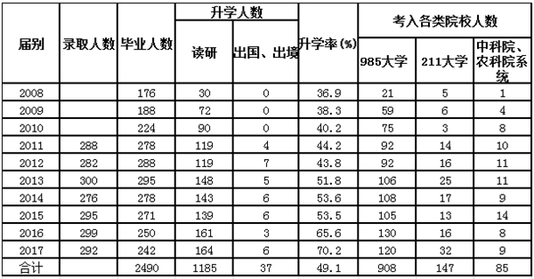 表2 动科学院2008—2017届本科生升学(出国)情况统计表
