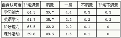 表4 动物科技学院毕业生“自我认可度”的满意程度调查(%)