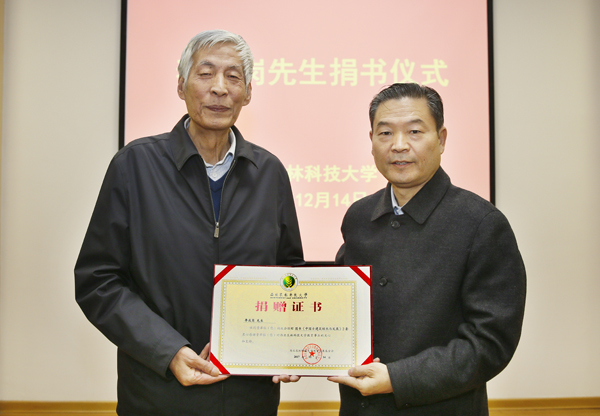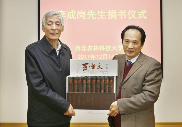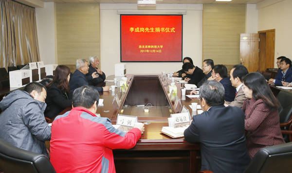 12月14日上午,李成岗先生捐书仪式在风景园林艺术学院举行。校党委书记李兴旺,我校原党委书记、陕西省决策委员会副主任张光强,全国劳动模范、咸阳市古建筑园林设计研究院院长李成岗先生出席捐书仪式。常务副校长吴普特主持捐书仪式。