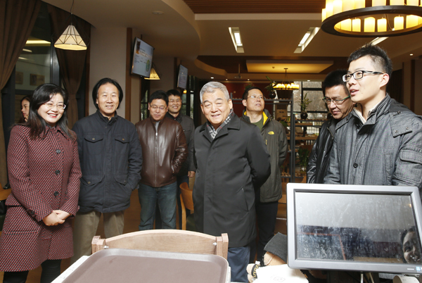 捐书仪式前,张光强、李成岗一行还参观了经管园林楼,考察了经济管理学院、风景园林艺术学院,并在稷下咖啡考察了我校大学生创业情况。