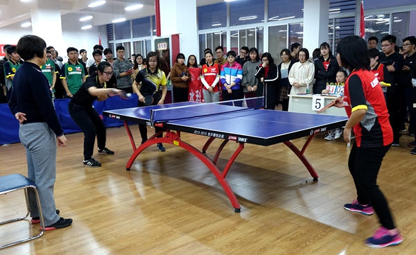 12月11至18日,我校2017年大学生乒乓球团体赛在北校区小球馆举行,全校 21个学院(系)组队参加比赛。经过一周的激烈角逐,男子组冠军最终被经管学院摘得,园艺学院、资环学院分获第二、三名;女子组冠军被水建学院摘得,经管学院、动医学院分获第二、三名。葡酒学院、国际学院、创新学院、食品学院获得道德风尚奖。