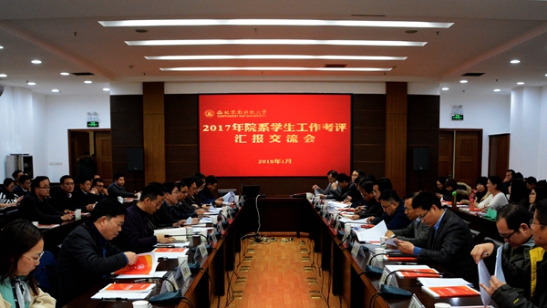 1月4日,2017年院系学生工作考评交流会在交流中心210会议室举行,校党委副书记吕卫东、相关单位负责同志担任评委,全体学工干部及辅导员参加。
