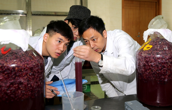 每年8月底到9月初,我校合阳葡萄试验示范站的葡萄就分批成熟了。这个阶段,葡萄酒学院的一门特色课程——葡萄酒工艺学实验也雷打不动的开展起来。该课程面向葡萄与葡萄酒工程专业的大三学生,有32个课时,与《葡萄酒工艺学》《葡萄酒分析检测》《葡萄酒微生物学》课程密切相关,在全国面积最大、设备最全的葡萄酒酿造试验车间进行。