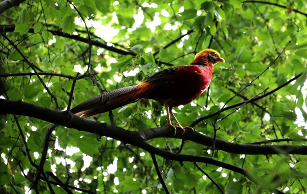 近日,我校图书馆职工邹根喜拍到了一种鸟,金冠、华羽、长尾、仪态优雅而机敏,仿佛传说中的神鸟——“凤”。据查证,该鸟为雄性红腹锦鸡,又名金鸡。专家介绍,随着校园生态环境的改善,现身或栖息于我校的鸟类目前已经达到60余种。