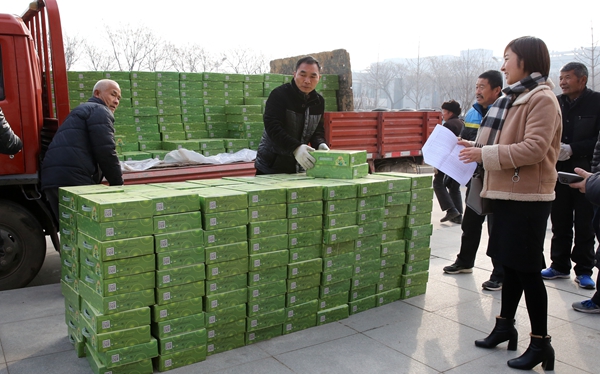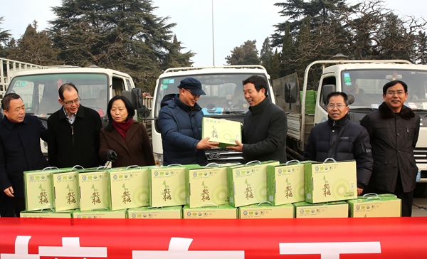 “这是我用5年时间完成的一份作业,请母校老师们打打分。”1月21日,校友王小铁将一盒有机猕猴桃双手奉送给校党委副书记徐养福。在他们身后,5000盒同样的猕猴桃装满了7辆卡车,很快将每人一盒,免费发放给全校在职职工。