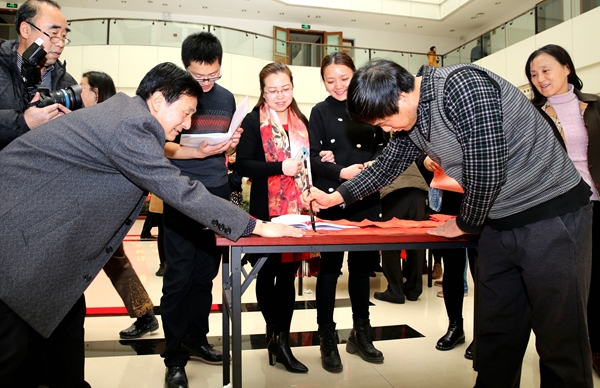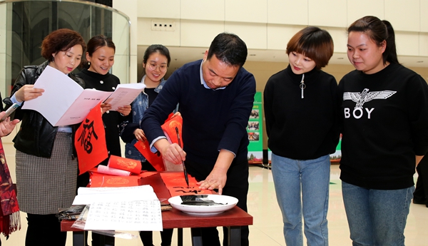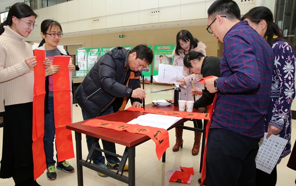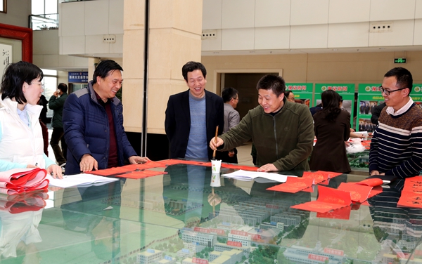 1月21日寒假放假之际,校工会组织教职工书法爱好者20余人,举行“喜迎新春·写送春联活动”,让广大教职工带上“祝福”、带上“喜庆”回家。21日下午集体书写,22日至23日分散到各单位书写,活动共开展3天,书写春联千余幅。该活动得到了校党委的高度重视与支持,受到广大教职工一致好评。