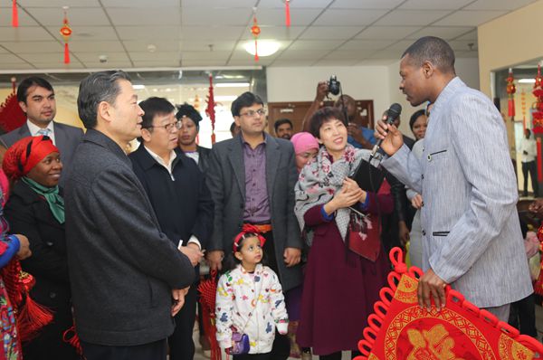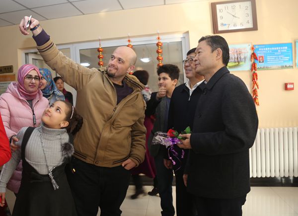 李兴旺、吴普特还来到国际学院学生宿舍楼,详细询问他们的学习情况,介绍中国传统文化,在宿舍与留学生亲切交流,并与他们合影留念,送上新年的美好祝福。