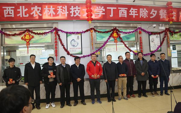 2月15日,农历大年三十下午,校党委书记李兴旺,校长吴普特,党委副书记徐养福、吕卫东,副校长冷畅俭、罗军看望慰问除夕仍坚守在保卫、后勤、医疗一线的工作人员,并与留校学生、外籍教师欢聚一堂,吃年夜饭。