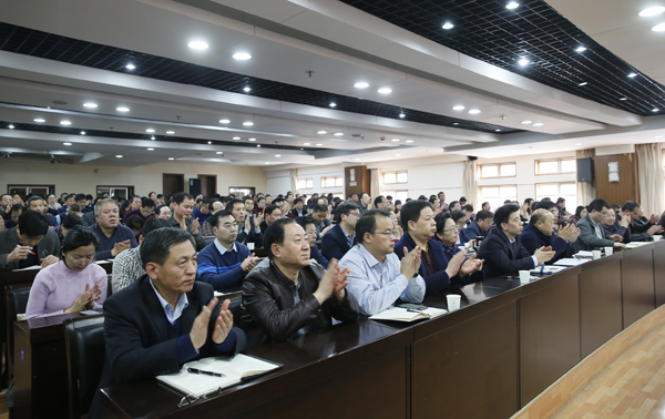 党委副书记徐养福宣读学校关于表彰2017年度先进单位和个人的决定,副校长马建华通报学校关于政府采购核查整改有关情况,副校长钱永华宣读学校关于表彰2017年度教学、科研成果奖的决定,党委副书记吕卫东宣读学校关于表彰2017年度先进基层党委的决定