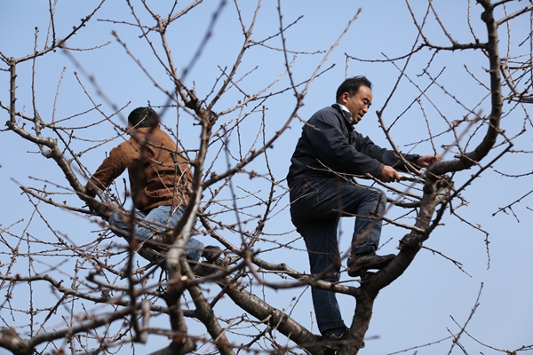 参赛选手进行果树修剪