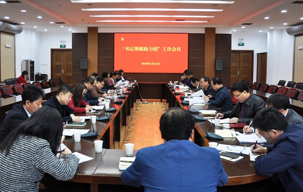 为全面贯彻党的十九大精神,打好精准脱贫攻坚战,全面落实学校2018年定点扶贫工作计划, 3月16日上午,学校在交流中心210会议室召开相关学院(所)党委书记会议,安排部署定点扶贫工作任务。党委组织部、扶贫工作办公室、19个相关学院(所)参加会议。