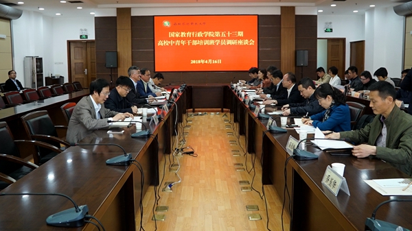 4月16日,国家行政学院第53期高校中青年干部培训学员来校调研,副校长钱永华主持调研座谈会并讲话。