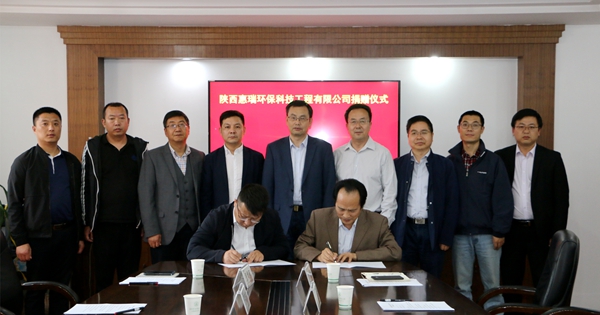 陕西恵瑞环保科技工程有限公司总经理王智、副总经理兼渭南华山环保科技发展有限公司总经理王宝琦、办公室副主任宋渭宾、市场部主任乔哲,我校资环学院、科研院、基金会相关负责人参加了捐赠仪式。