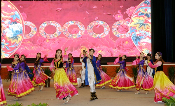 启动仪式上,各民族同学带来了独具风情的民族舞蹈。校党委副书记吕卫东、省高教工委学工部副部长库来西•依布拉音、相关部门负责人与各民族同学一起载舞,用多元的包容诠释了西农最炫“民族风”。