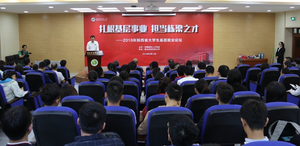 5月12日,“扎根基层事业,担当栋梁之才”2018年陕西省大学生基层就业论坛在南校区绣山活动中心报告厅举行。副校长马建华,中国西安人才市场管委会办公室、陕西省人才交流服务中心副主任陈力平出席论坛并致辞,5位基层就业的毕业生代表在论坛上与大家分享了各自的基层就业故事。