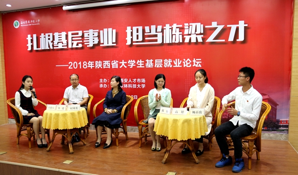 论坛上,西北工业大学毕业生陈银、长安大学毕业生高舒、陕西理工大学毕业生宋国英、我校毕业生杨百良和朱瑞等5位优秀的基层就业学生代表结合自己的基层工作经历与大家分享了各自选择基层、扎根基层、奉献基层的青春故事。