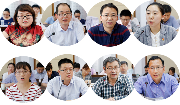 基层党委书记代表、基层党支部代表、教师代表和部门代表在座谈会上发言