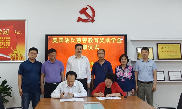 王晓明女士与教育发展基金会吴万兴秘书长签订捐赠实施协议。根据实施协议,自2018年起,美国胡氏慈善教育基金会将每年捐赠我校15万元,用于奖助经济管理学院家庭困难且品学兼优的本科生。