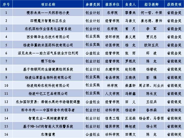 本届竞赛自2018年3月启动以来,吸引了全省60余所高校的数万名学生报名参赛,近600件作品入围省级竞赛,134件作品进入秘密答辩环节角逐金银奖并在开幕式上进行展出。竞赛组委会组织了由省内外多领域专家组成的评审委员会对作品进行了评审,共评出金奖64件、银奖70件、铜奖156件。我校选送18件作品参赛,其中《西安锦华生态技术有限公司》等6件作品获评金奖,《杨凌翔羚农牧科技有限公司》等6件作品获评银奖,《即牛牛肉-中国高端即食牛肉领导者》等4件作品获评铜奖。