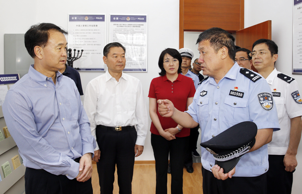 杜航伟来到我校保卫处办公区,实地察看了校安全指挥中心和示范区公安局校园警务室,听取了校保卫处处长刘西平就学校安防工作开展情况的汇报,并看望了正在工作的干警,听取了警务室负责人就校园交通管理、出入境管理、外籍人员管理、治安管理等工作的汇报。杜航伟对校园警务工作给予充分肯定,并与李兴旺书记就进一步加强校园治安和交通安全管理进行了交流。