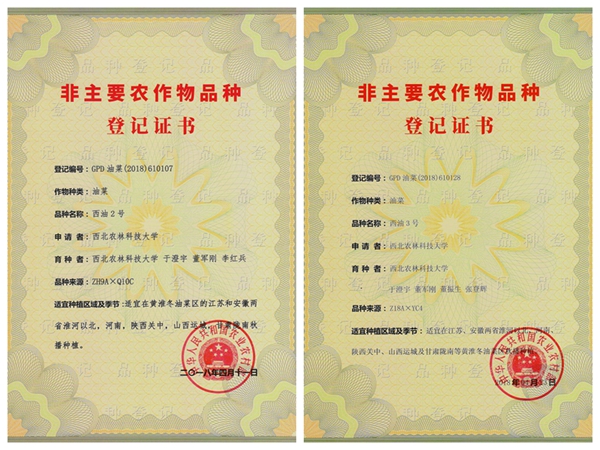 近日,我校油菜研究中心选育的两个油菜杂交种西油2号、西油3号通过国家非主要农作物新品种登记,并由农业农村部发布公告并颁发证书。这是2016年新《中华人民共和国种子法》生效后,首批通过国家级农作物新品种区试并获准登记的油菜新品种(不包括已审定品种的登记)。