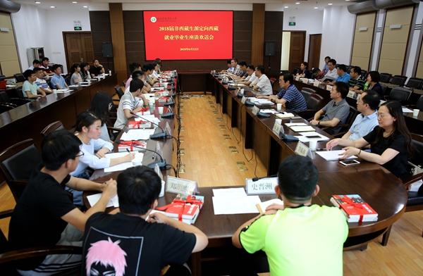 6月12日,我校欢送2018届非西藏籍定向西藏就业毕业生座谈会在交流中心210会议室举行,校党委书记李兴旺,党委常务副书记赵忠出席座谈会,党委副书记吕卫东主持会议,党校办、组织部、宣传部、研工部、学工部、就业指导中心等部门负责人,以及相关学院党委负责人参加座谈会。
