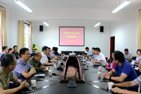 在生物学综合大实习调研座谈会上,生命学院负责人介绍了生物学实习的基本情况,参会教师围绕如何更好发挥火地塘林场教学基地作用、教学感受等进行了畅谈,并提了诸多建设性意见。