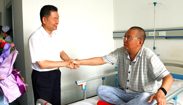 “你很坚强、乐观,大家心里都牵挂着你,特地过来看望你。希望你保重身体,早日康复。” 6月25日,在建党97周年即将到来之际,校党委书记李兴旺专程赶到校医院,看望卧病在床的我校信息学院教师、有着26年党龄,同时获2018年校优秀共产党员和全省高校优秀共产党员称号的陈勇副教授时,拉着他的手说。