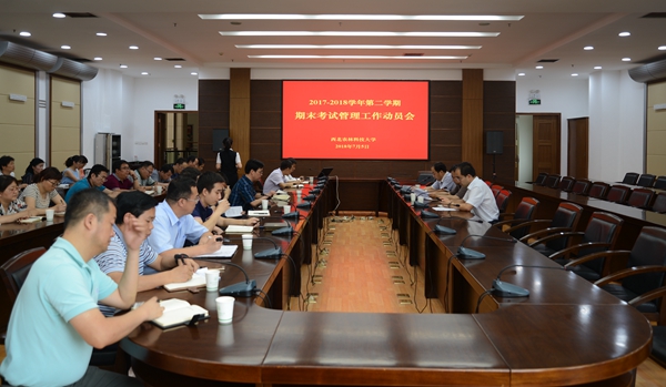 7月5日下午,我校2017—2018学年第二学期期末考试管理工作动员会议在国际交流中心210会议室召开,教务处相关负责人对考试工作进行了具体安排部署。校党委副书记吕卫东出席会议。