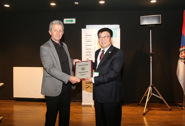 7月2日至5日,丝绸之路农业教育科技创新联盟第三届合作论坛在塞尔维亚诺维萨德大学举行,来自中国、塞尔维亚、俄罗斯、哈萨克斯坦、波兰、约旦、荷兰7个国家35所单位的近120余位代表参加。我校校长、联盟新任秘书长吴普特,副校长罗军,国际合作与交流处、发改处、教务处负责人和多位专家出席论坛。期间,与会中外代表积极探讨交流,为增进交往、寻求合作、推动发展而不断努力。