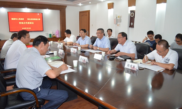 7月12日,固原市人民政府市长助理王金全带领市科技局局长李海和农牧局副局长赵永刚一行3人来校签署肉牛产业科技合作协议。副校长钱永华出席会议并讲话。