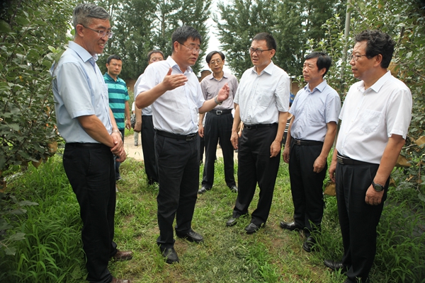 张合成一行听取赵政阳教授矮砧栽培技术成果介绍