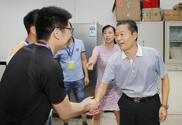 7月21日,校党委书记李兴旺、党委副书记吕卫东来到本科招生网上录取工作现场,检查指导学校2018年本科招生录取工作,并看望慰问招生录取工作人员。