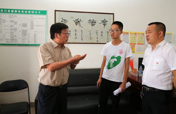 党家塬村是陕西苹果大县洛川北部的一个山村,与县城的直线距离30公里左右,因为地形多沟壑,实际行程远远超过30公里。8月1日下午,吴普特来到党家塬村村委会,看望正在作调查的水建学院2017级洛川籍学生吴江辉。吴江辉此前完成了宜川的调查任务,给洛川各个乡镇都发了问卷,下周还准备去志丹县做调查。他告诉吴普特校长,虽然很累,但是感觉特别充实,“这是我从小学以来,第一个忙碌的暑假,非常有纪念意义”。