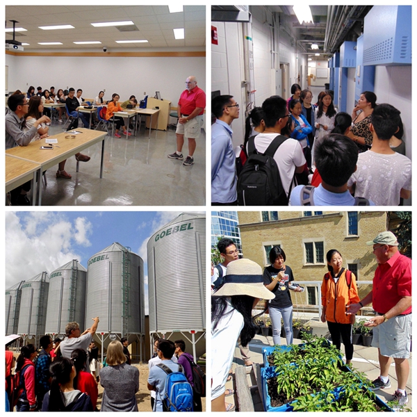 访学团每天下午进行观摩考察。同学们参观了USASK农学院本部、科研实验农场、奶牛养殖中心、加拿大国家农业生物中心以及创新实验园区等。先进的农业机械化水平、高效的管理模式、国际化的科研平台无不给学员们留下了深刻的印象。于此同时,“Urban, Agriculture and Food”“South Saskatchewan River Basin”“Agriculture’s Rule in Canada”“Water Quality Monitoring”等数场报告会让同学们不仅深入了解了加拿大农业发展现状,对比中加农业的差异,也找到自己的专业兴趣所在,为今后的职业发展规划蓝图。