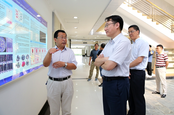 8月9日,陕西省委科技工委书记、省科技厅厅长赵岩,来我校旱区作物逆境生物学国家重点实验室调研。