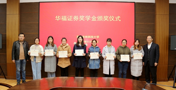 华福证券有限责任公司办公室副总经理崔伟、西北分公司总经理张程、西北分公司副总经理孙文麟、西北分公司西北投行部总经理赵强兵,教育发展基金会、学生处、农学院、经管学院相关负责人出席颁奖仪式。