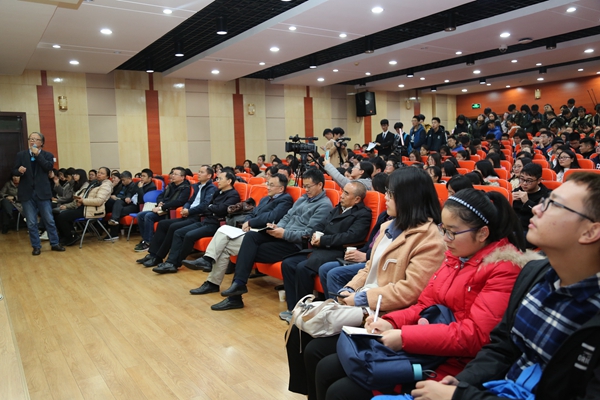 樊志民首先与在场师生分享了自己录制《开讲啦》的心路历程,以节目热播后在网络上广泛传播的热词热句开讲,用风趣幽默的语言、浅显易懂的故事,从独具的自然禀赋、智慧的生存理念和强大的更新完善能力三个方面,以农史的角度解读了五千年中华文明连续不间断的奥秘。报告中,樊志民引经据典、深入浅出,从四大文明古国的对比到中国农历和节气的来由,从中国农业文化的发展脉络到各地吃穿住行的地方特色,细致解读了中华文明在农业历史中的血脉传承,展现了中国农业历史文化的博大精深,带领全场师生享用了一场农业历史文化的饕餮盛宴。
