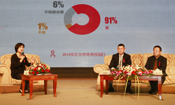 11月30日下午,“美好青春我做主——2018年红丝带青春校园行”活动走进我校,广大学生通过与中央电视台著名少儿节目主持人、中国性病艾滋病防治协会和中国健康教育中心红丝带健康大使鞠萍、中国疾病预防控制中心性病艾滋病预防控制中心副主任汪宁以及国家疾病预防控制专家委员会委员、空军军医大学唐都医院传染病教研室主任孙永涛的主题访谈、现场互动回答等交流方式,上了一堂生动的防艾公开课。陕西省教育厅副厅长赵昶葆、我校副校长马建华、陕西省卫生健康委员会党组成员、省中医药管理局局长马光辉等出席活动。