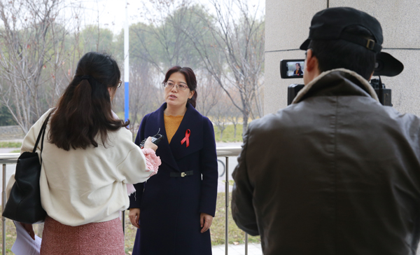 我校医院院长穆沛红接受电视台记者采访