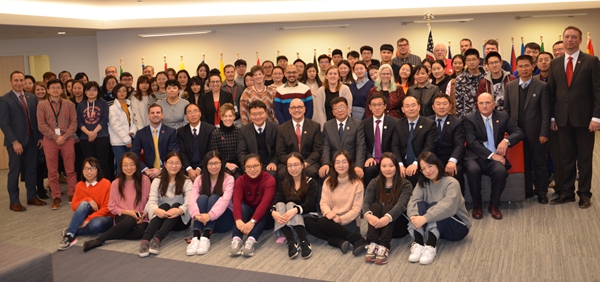 代表团同我校首批参加美国内布拉斯加林肯大学合作办学项目学生合影